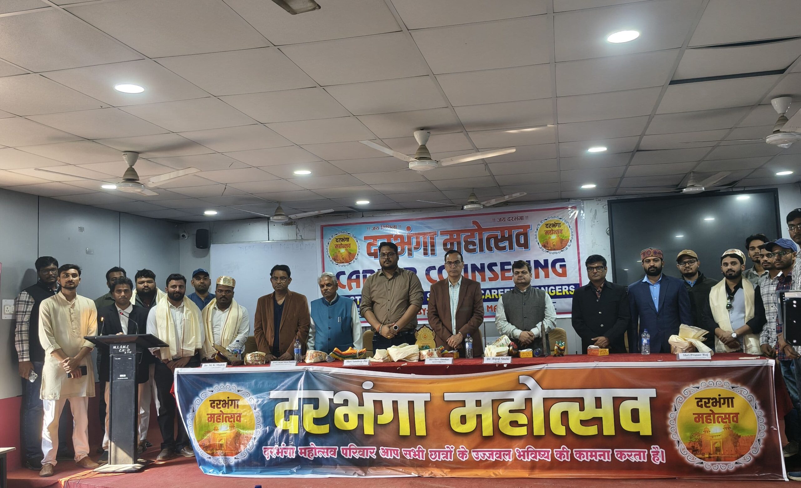 दरभंगा:_दरभंगा महोत्सव के तत्वावधान में एम.एल.एस.एम. कॉलेज के भव्य सभागार में छात्रों के भविष्य को नई दिशा देने हेतु एक व्यापक करियर काउंसलिंग कार्यक्रम का आयोजन किया गया। कार्यक्रम में शिक्षा, न्याय, वित्त, चिकित्सा, आपदा प्रबंधन एवं विज्ञान जैसे विविध क्षेत्रों के विशेषज्ञों ने अपने अनुभव साझा कर छात्रों को सफलता के मंत्र दिए।