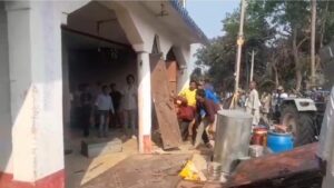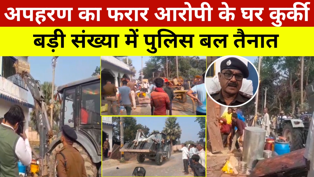 मामला दरभंगा जिला के कमतौल छात्रण क्षेत्र के एक गांव की है जहां 28 जनवरी को नाबालिक लड़की का पिता कमतौल थाना में आवेदन देकर यह आरोप लगाया था कि उसके पड़ोसी जो उसी गांव के रहने वाले हैं वह उसकी पुत्री का ब्रेन वाश कर शारीरिक शोषण करने के लिए भाग कर ले गया है और उसे अपने मकान में रखा है ! इसकी शिकायत करने जब पीड़ित परिवार का पिता और मां आरोपी के घर पहुंची तो आरोपी का पिता,दो भाई एवं मां ने उन सभी के साथ गाली-गलौज किया और घर से भगा दिया ! वही पीड़ित परिवार का कहना है कि आरोपी पहले से शादीशुदा है और उसके पास बच्चे भी हैं! उसके बाद भी इस प्रकार की घटना को अंजाम दिया है जिसको लेकर पहले कमतौल थाना की पुलिस आरोपी के घर ढोल बाजा के साथ पहुंची और घर पर इश्तिहार चिपकाई! कल यह कुर्की जाप्ती की कार्रवाई को अंजाम दी कमतौल थाना की पुलिस जीसमें देख रहे हैं बड़े से मकान को जेसीबी से तोड़ा जा रहा है!